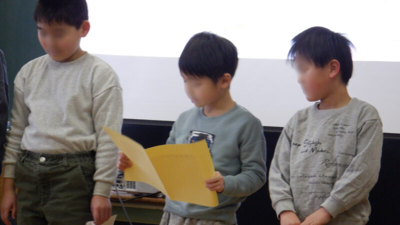 朝から雪が降り積もる1月らしい天気の中、3学期の始業式が行われました。1・4・5年生が3学期の目標を発表しました。学校長からは、目標を三日坊主で終わらせないためにできることについての話がありました。日頃から意識して、目標が達成できるようになっていけるといいですね。