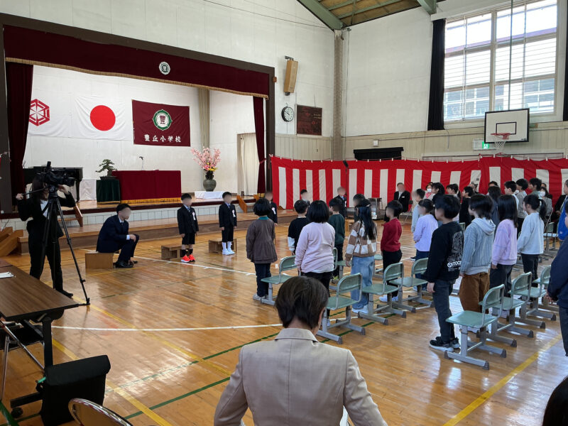4月6日 入学式 最近の様子 2026.04.08 朝はひんやりとしていましたが、日中は暖かく、入学式にぴったりのよい天気となりました。5名の新入生が豊丘小学校に入学しました。少し緊張した様子も見られましたが、これから学校に慣れ、楽しい毎日を過ごしてほしいと思います。
